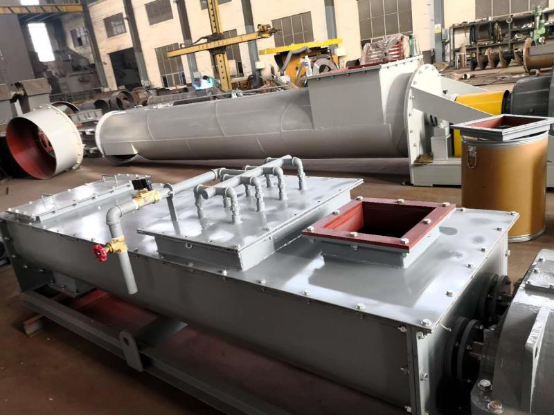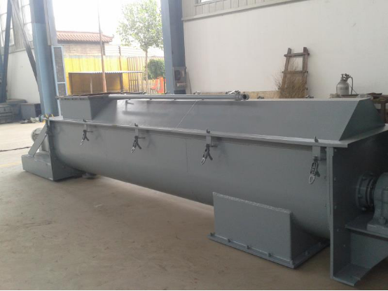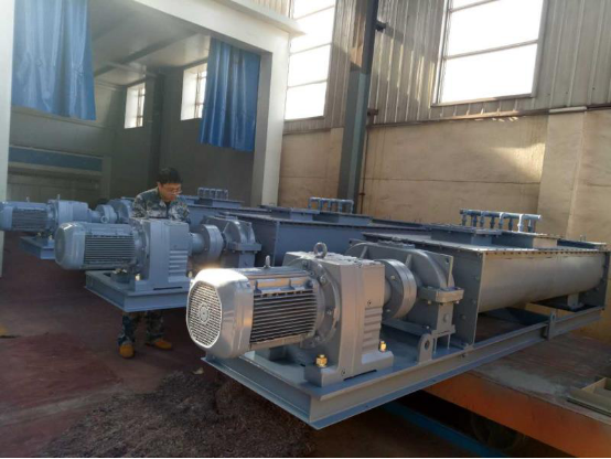 SJ型双轴搅拌机是将粉状物料进行喷水搅拌、混合的设备。主要使用在火力发电厂的除尘器下,也可供化工、冶金、矿山、建材等行业使用。通过控制加水量,以达到核实的湿度要求。采用两组螺旋叶片进行搅拌。搅拌效果高,占地面积少。螺旋叶片采用高耐磨特种合金或复合陶瓷,使用寿命长。双轴搅拌机采用摆线针轮减速器传动,转动平稳。噪音低。双轴搅拌机从顶部进料,底部排料,结构合理。各结合之间的密封严密,运行平稳。双轴搅拌机舍友加湿喷水系统,保证喷水均匀,调节供水量来满足需要。采用手压油泵集中供给四个传动轴承润滑油脂,方便设备的使用维护,具有省时的特点。